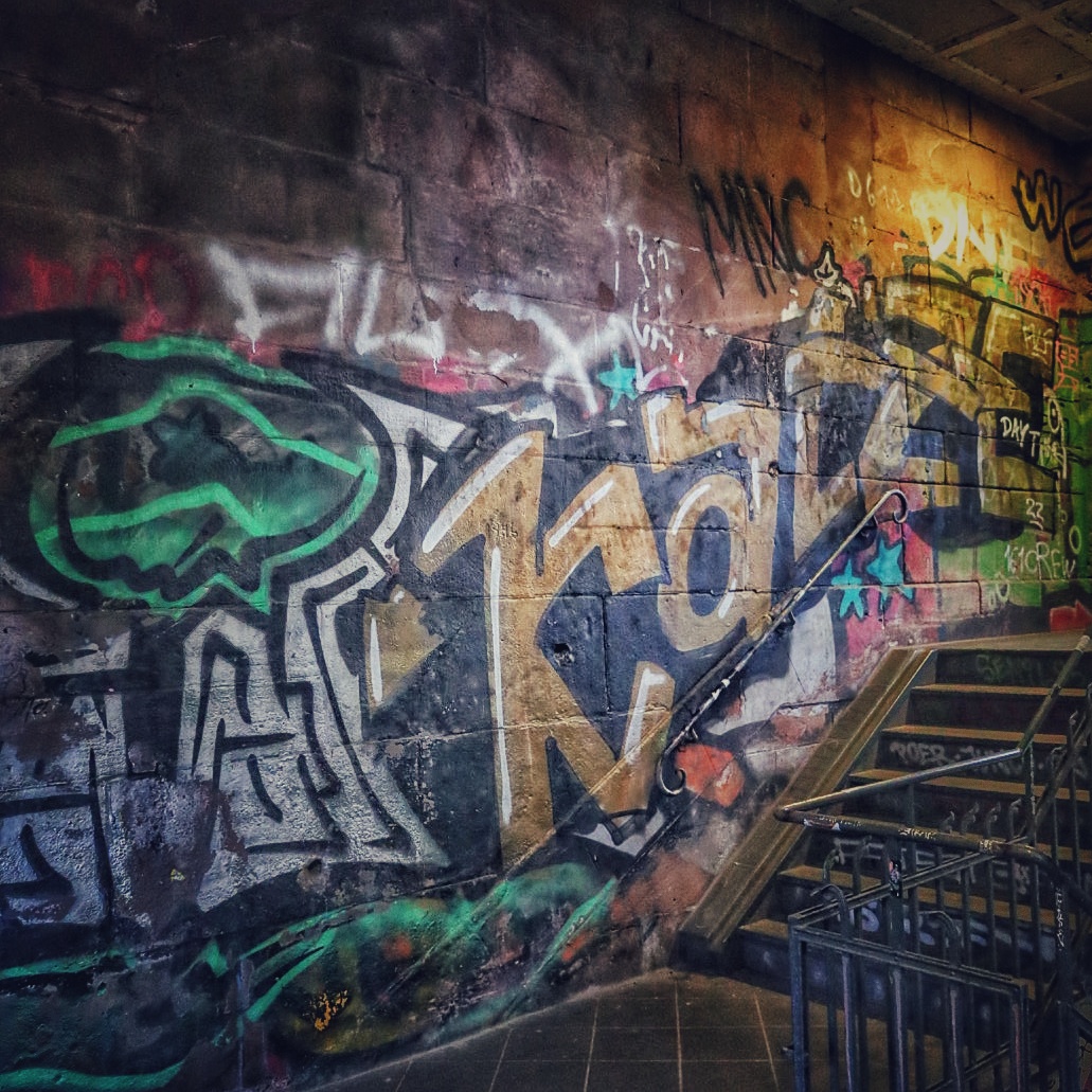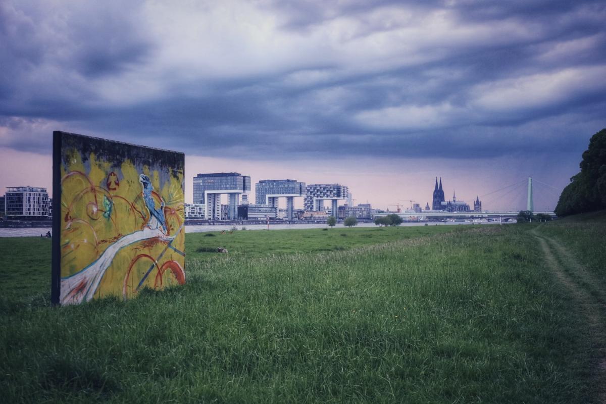 Nach einer kurzen Stärkung im Johann Schäfer Biergarten geht es weiter über die Südbrücke, die Poller Wiesen und dem Rheinboulevard in Deutz. Die Hoffnung, doch eine sonnige goldene Stunde zu erwischen, wird von dicken grauen Wolken verwehrt. Doch, hey, auch daraus lassen sich fantastische Aufnahmen zaubern, die Magie des Augenblicks einfangen. Mich reizt heute Abend eh mehr die Streetartkunst rund um die Südbrücke. Nein, ich finde auch nicht jede Kritzelei, jedes Tag toll, aber trotzdem lassen sich mit Manchen spannende Bilder kreieren. Es ist wie immer: Die Augen offen halten, hinschauen und probieren, ob das gesehene Motiv auch fotogen ist.