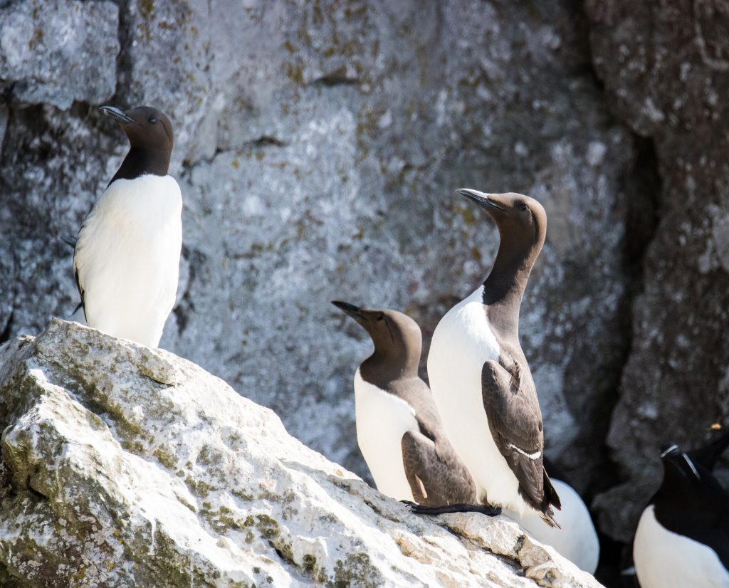 Im Fokus standen dabei – damals wie heute – vor allem die Trottellummen (Uria aalge). 1880 lebten nur noch etwa 20 Paare auf der Insel (der Rest war von der Küstenbevölkerung ausgerottet worden). Mittlerweile fühlen sich mehr als 16.000 Brutpaare (das entspricht etwa 75 % aller Trottellummen im Ostseeraum) des markanten Vogels sehr wohl an den steilen Klippen. Daneben brüten hier noch zig andere Vogelarten: Tordalke, Eiderenten, Kormorane, Küstenseeschwalben, Sturmmöwen und noch viele mehr. Dazu kommen Wintergäste und im Frühjahr und Herbst tausende Zugvögel.