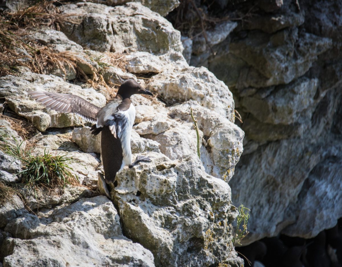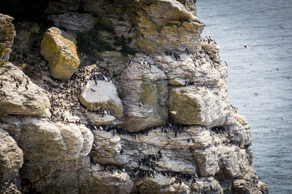 Im Fokus standen dabei – damals wie heute – vor allem die Trottellummen (Uria aalge). 1880 lebten nur noch etwa 20 Paare auf der Insel (der Rest war von der Küstenbevölkerung ausgerottet worden). Mittlerweile fühlen sich mehr als 16.000 Brutpaare (das entspricht etwa 75 % aller Trottellummen im Ostseeraum) des markanten Vogels sehr wohl an den steilen Klippen. Daneben brüten hier noch zig andere Vogelarten: Tordalke, Eiderenten, Kormorane, Küstenseeschwalben, Sturmmöwen und noch viele mehr. Dazu kommen Wintergäste und im Frühjahr und Herbst tausende Zugvögel.