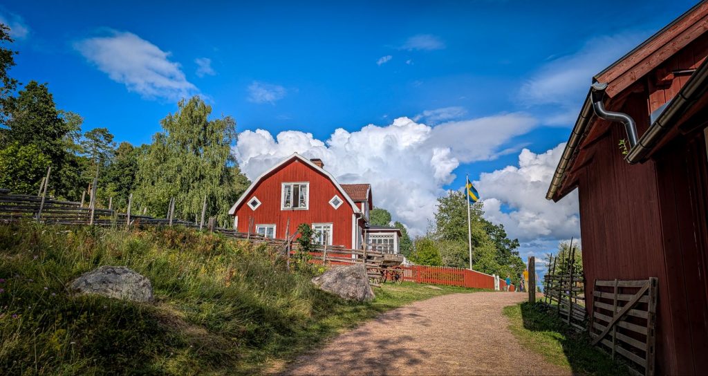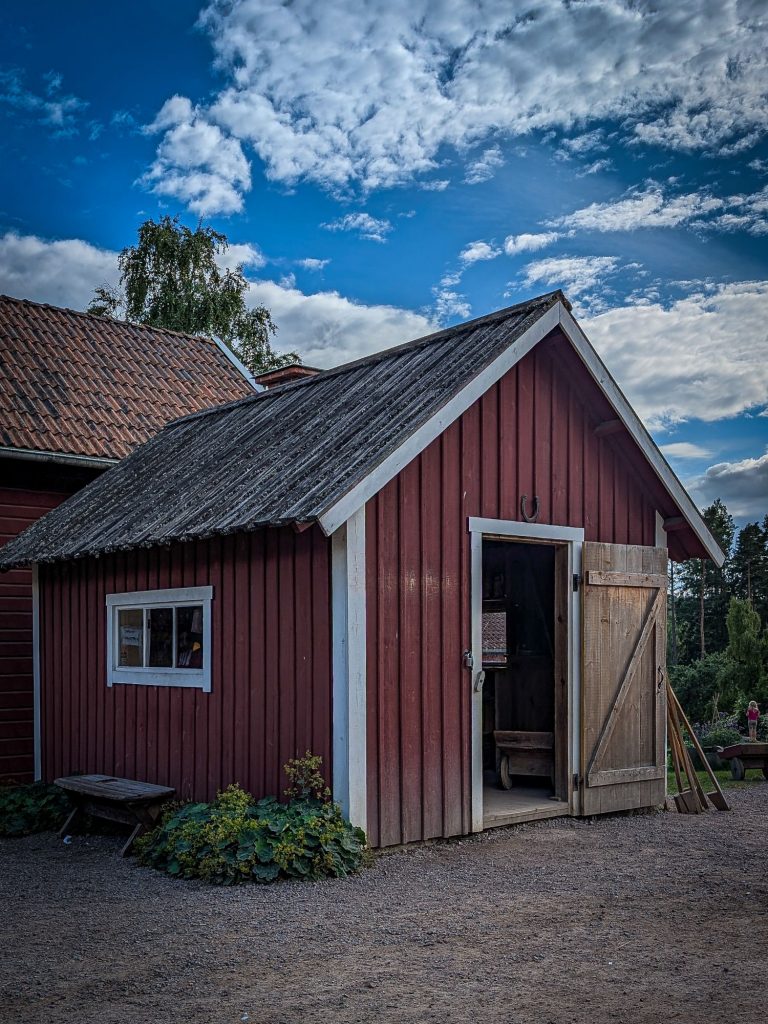Natürlich reihte sich auch das Synonym für schwedische Idylle in unsere Reiseroute ein: Bullerbü. Auch knapp 80 Jahre nach Erscheinen des Buches und fast 40 Jahre nach den beiden Filmen ist Sevedstorp weiterhin eine beliebte Pilgerstätte für große und kleine Fans. Die drei Höfe können zwar nur vom Zaun aus betrachtet werden, da sie in Privatbesitz sind, das schmälert das Erlebnis in keiner Weise. Kinder können sich zudem, wie die Bullerbü-Kinder im Heu austoben. Ein kleines Café bietet allerlei süße Köstlichkeiten für vom Spielen und Toben ausgehungerte Kinder.