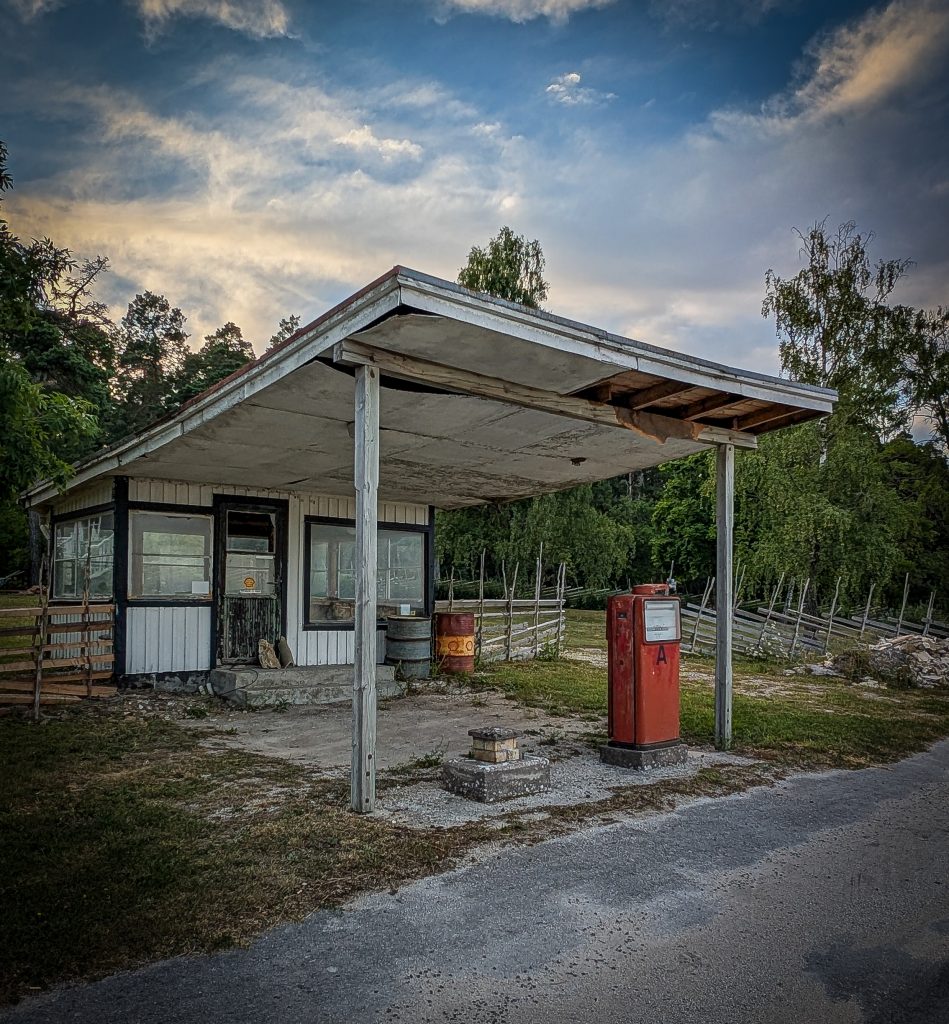 Diese alte Tankstelle auf Gotland war so ein Ort. Kein Ziel, kein Plan – eher ein leiser Einschnitt in die Bewegung. Als hätte der Weg selbst kurz um Aufmerksamkeit gebeten.